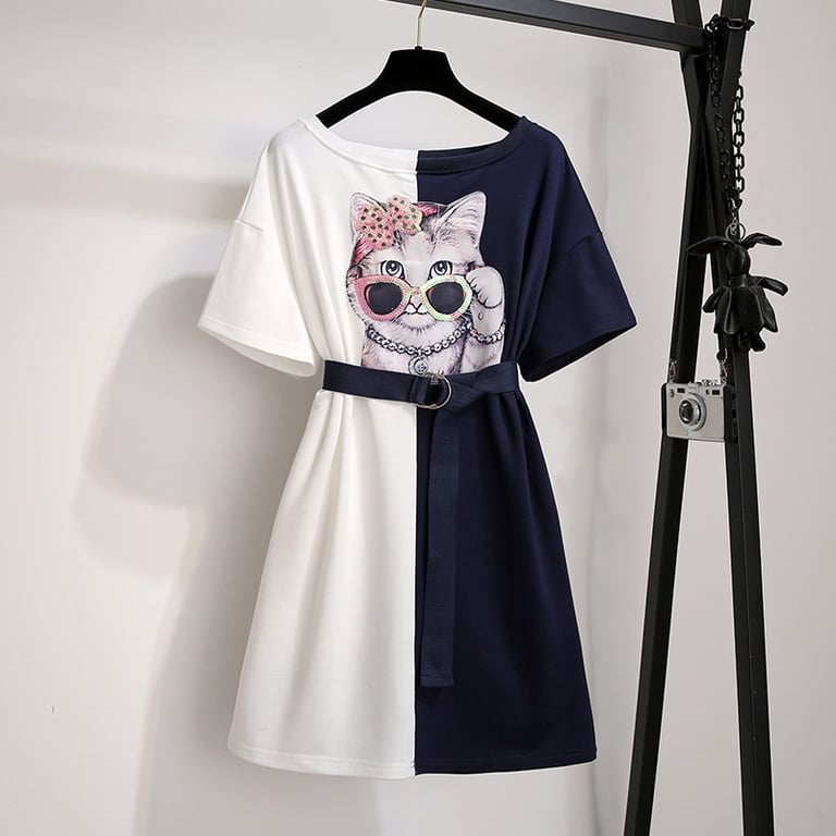 Ladies' designer summer dress with a cat motif