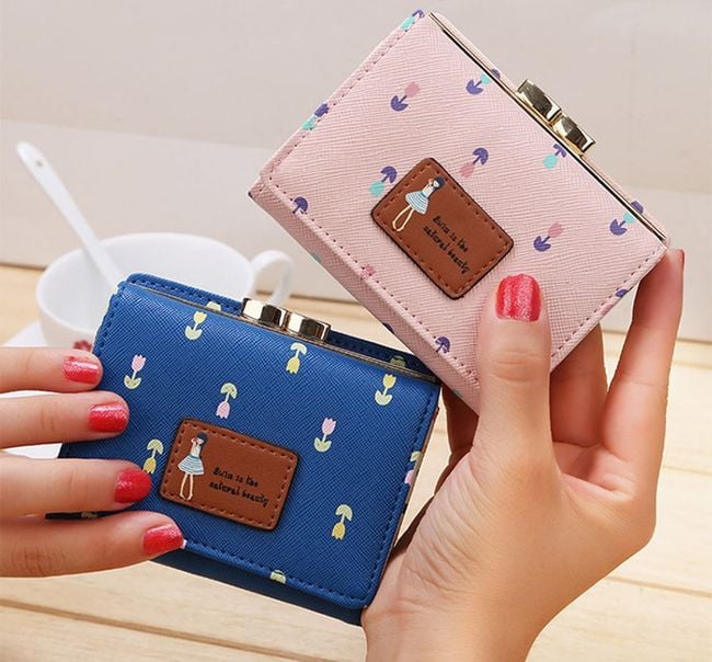 Women's designer wallet with flowers.