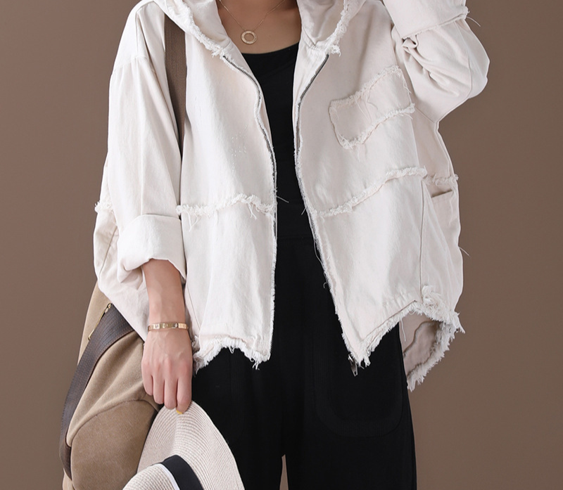 • Tags: women's jacket, distressed jacket, hood, rebellious look