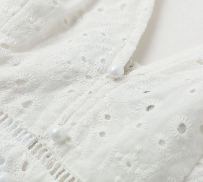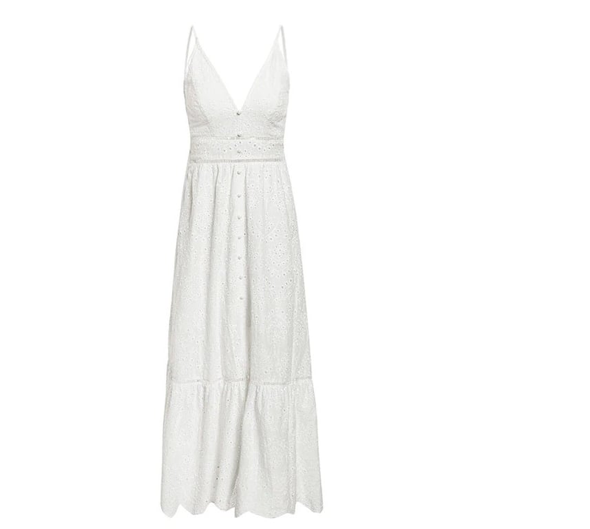 Long summer dress with a magical embroidery. Adorned with pearls.
