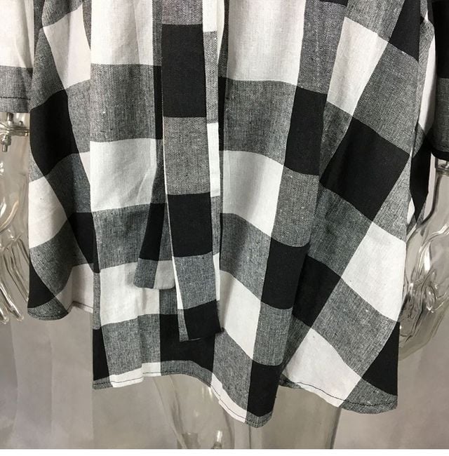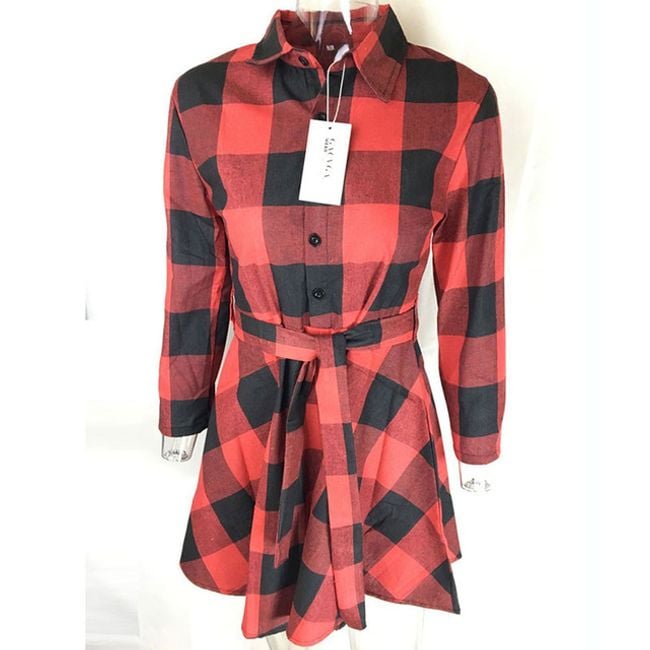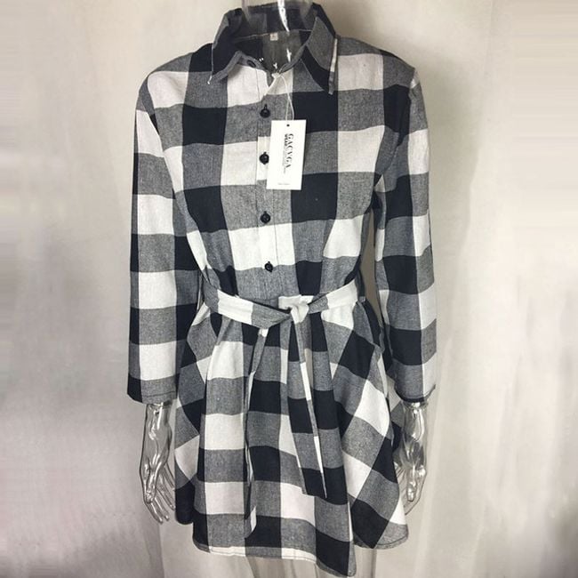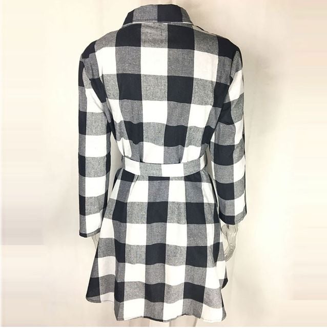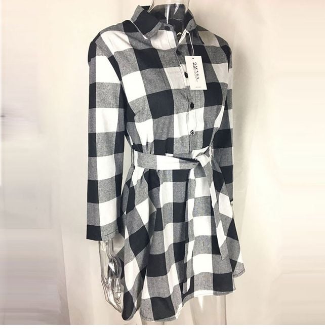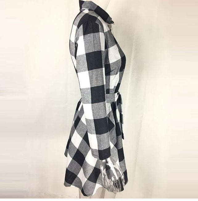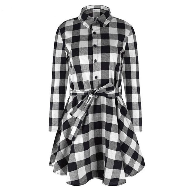 Women's long-sleeve dress features button fastening and stands out with a stylish checked pattern. Available in 3 colour options.