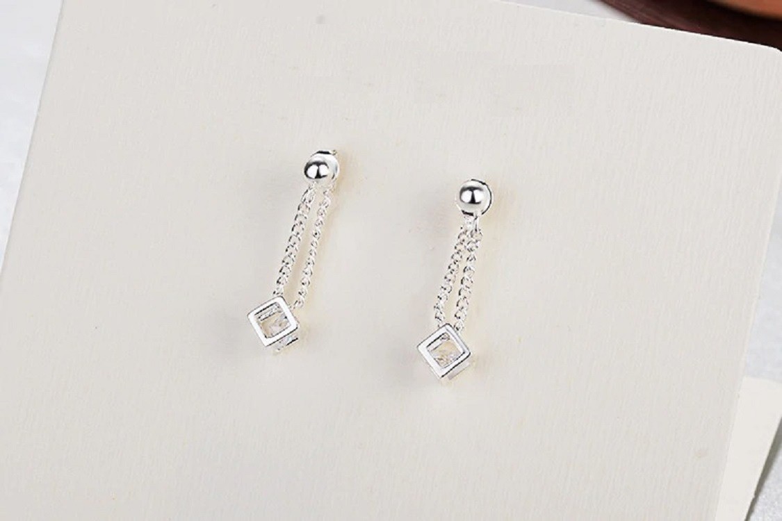 Women's Drop Earrings with Cube