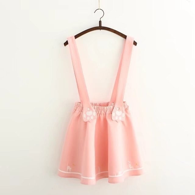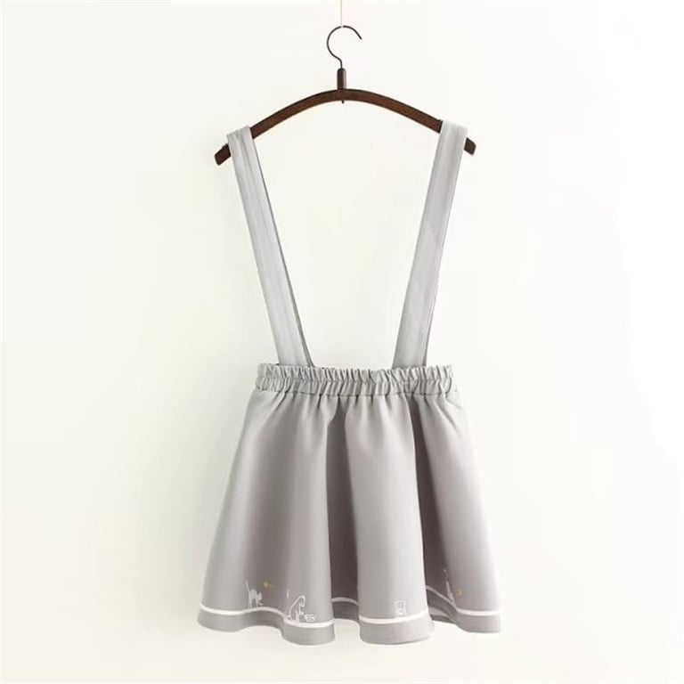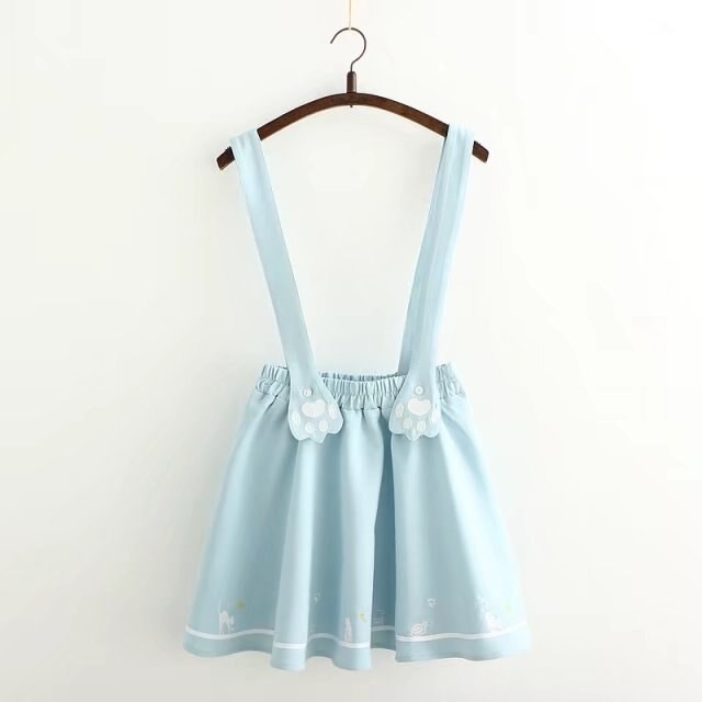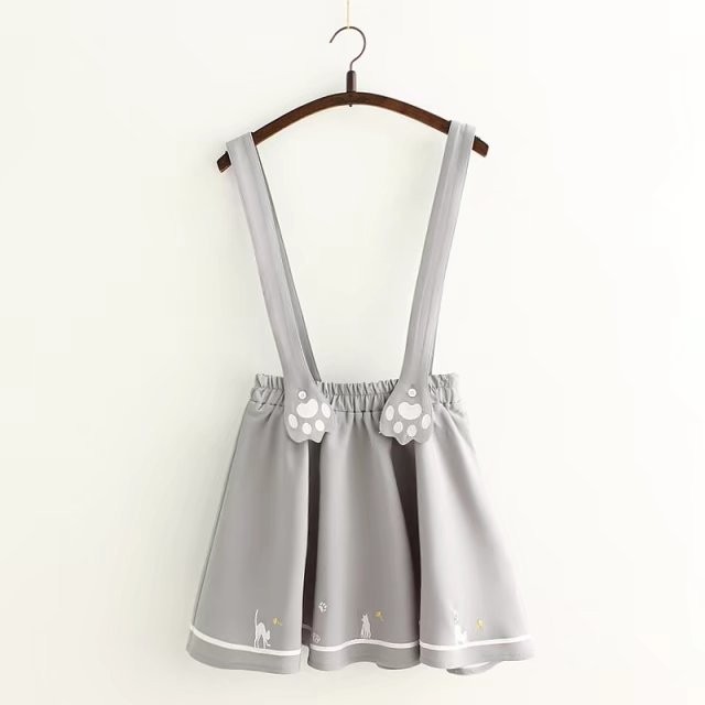 Women's dungaree skirt with a cat pattern