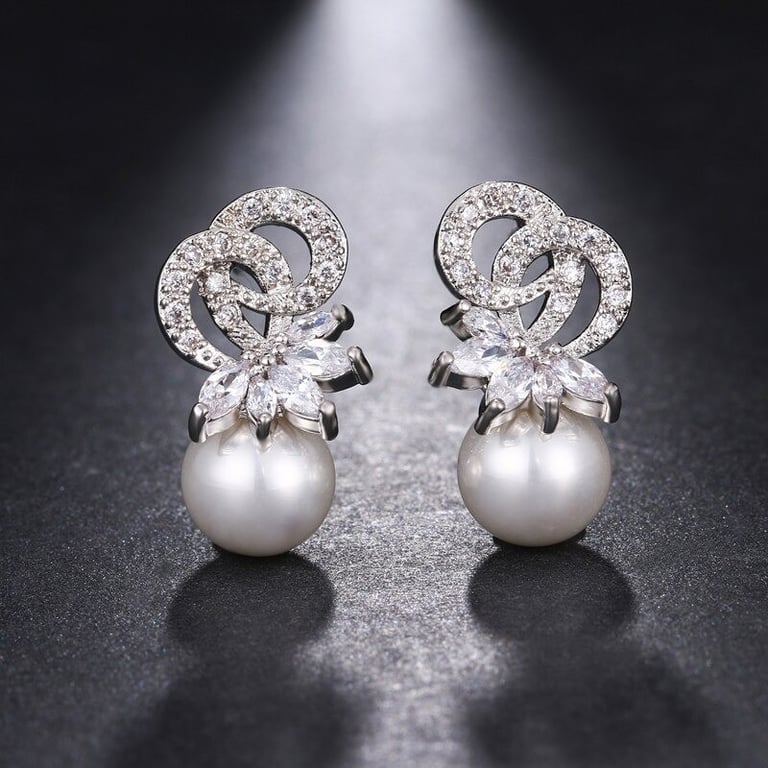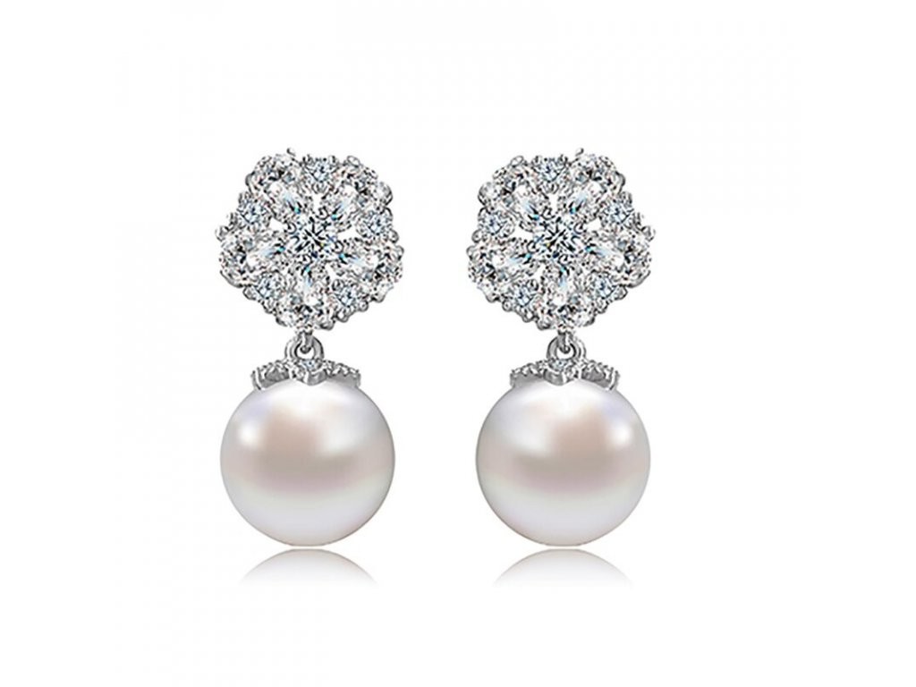 Women's earrings with pearls and zirconia