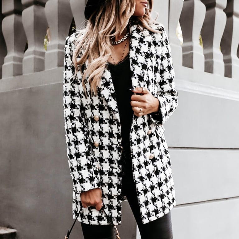 • Tags: Women's coat, check pattern, autumn coat, elegant, spring, button coat