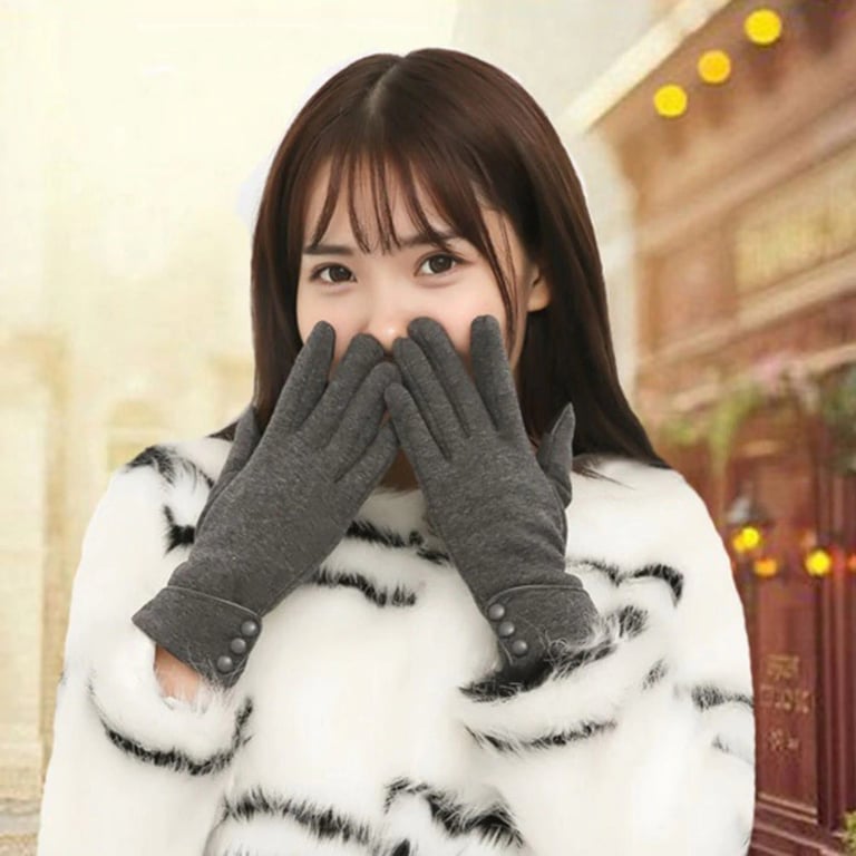 Elegant women's cashmere gloves with buttons are suitable for cold weather.