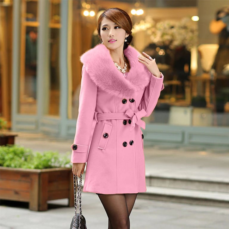 The elegant cut of the new coat will shape your beautiful figure. It adds a touch of nobility and at the same time keeps you warm during winter with its lovely detachable furry collar.
