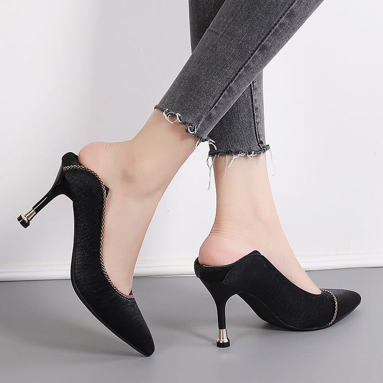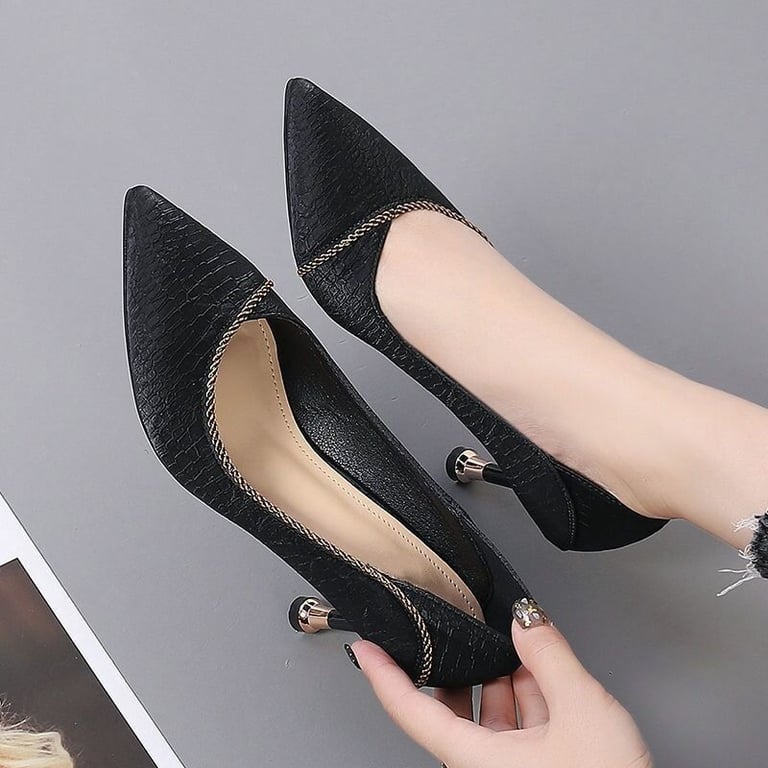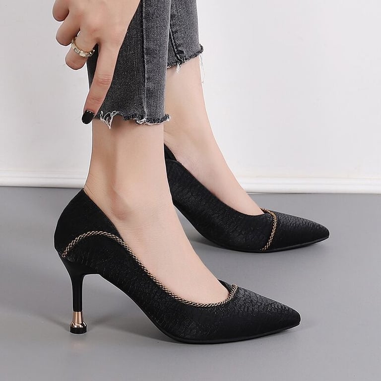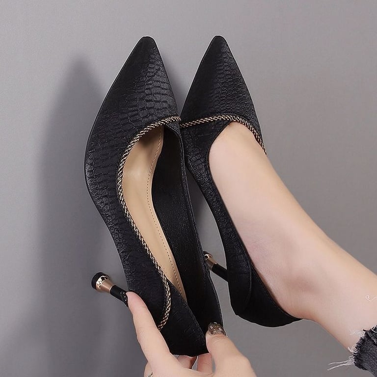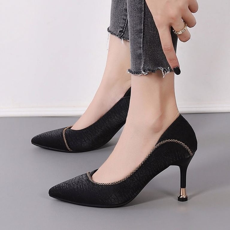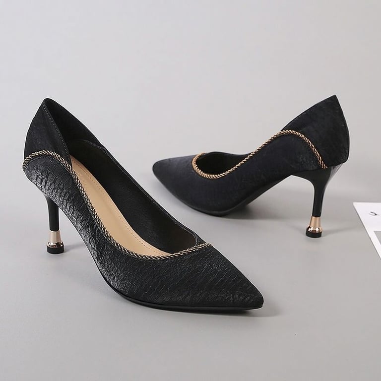 • High-heeled shoes with a subtle decoration.