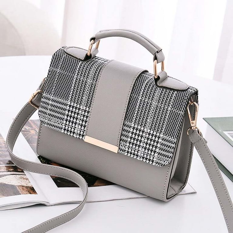 Elegant smaller women's handbag in grey with a black and white check pattern, which perfectly complements your outfit.