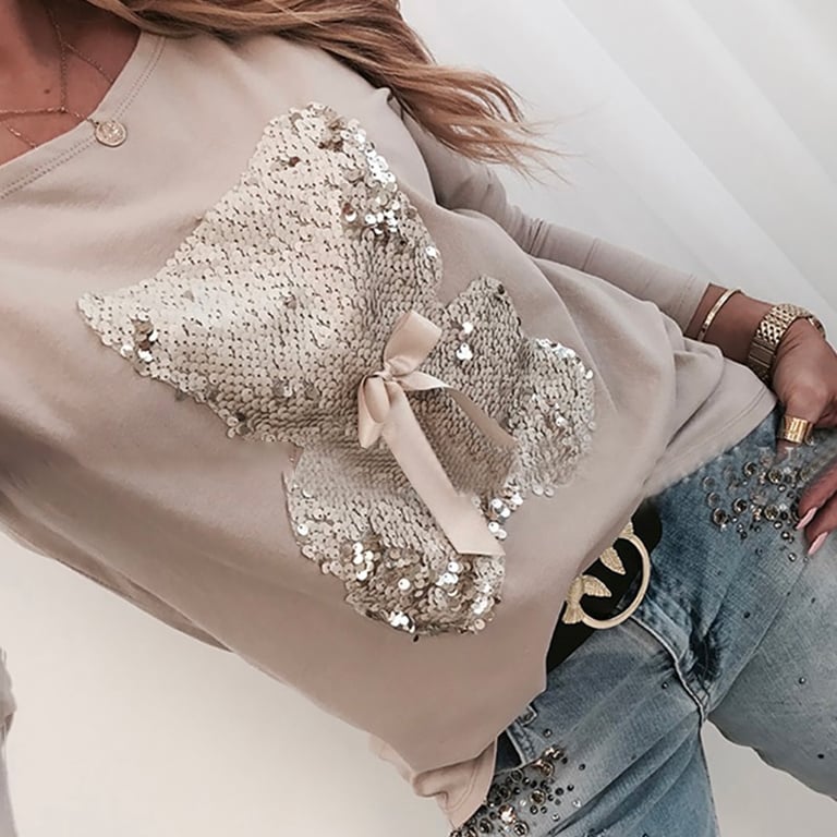 Ladies' elegant sweater with a sparkling teddy bear.