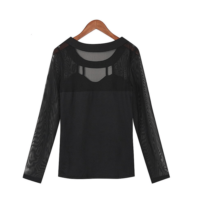 A beautiful elegant t-shirt with transparent sleeves and straps around the chest.