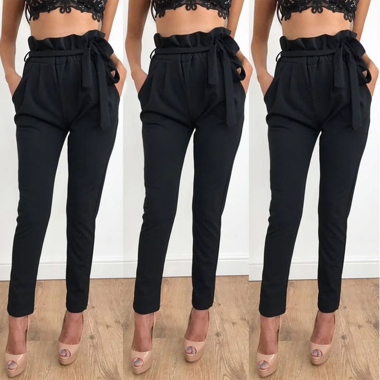 Women's comfortable casual trousers in a solid colour elegant design. The trousers feature a high waist with a tie belt. Available in several variants.