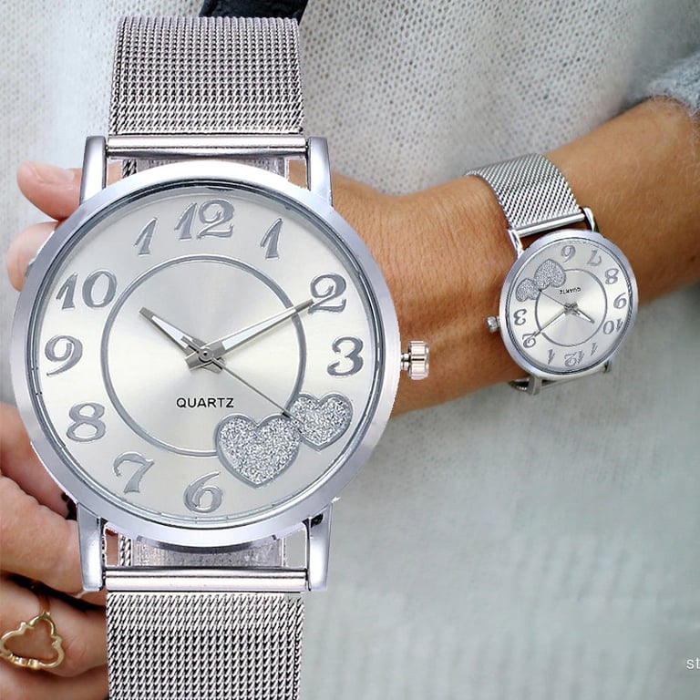 Stylish watch with delicate hearts to complement your wrist.