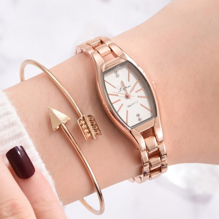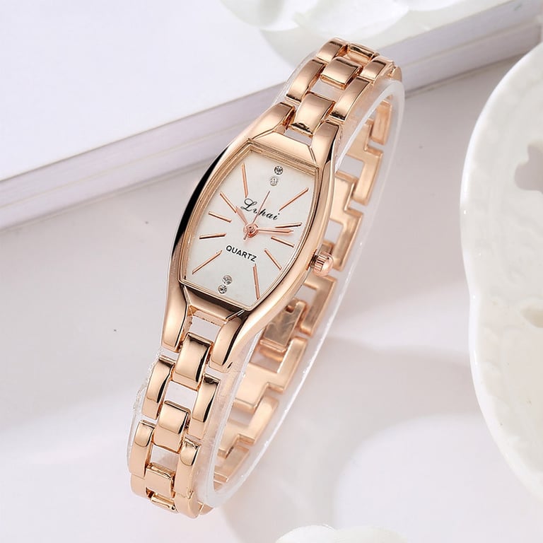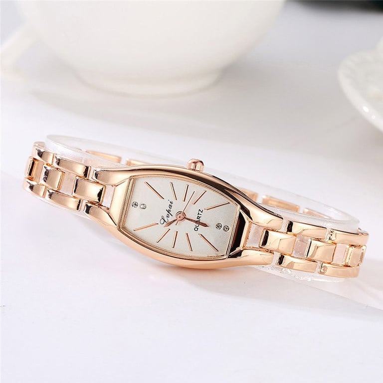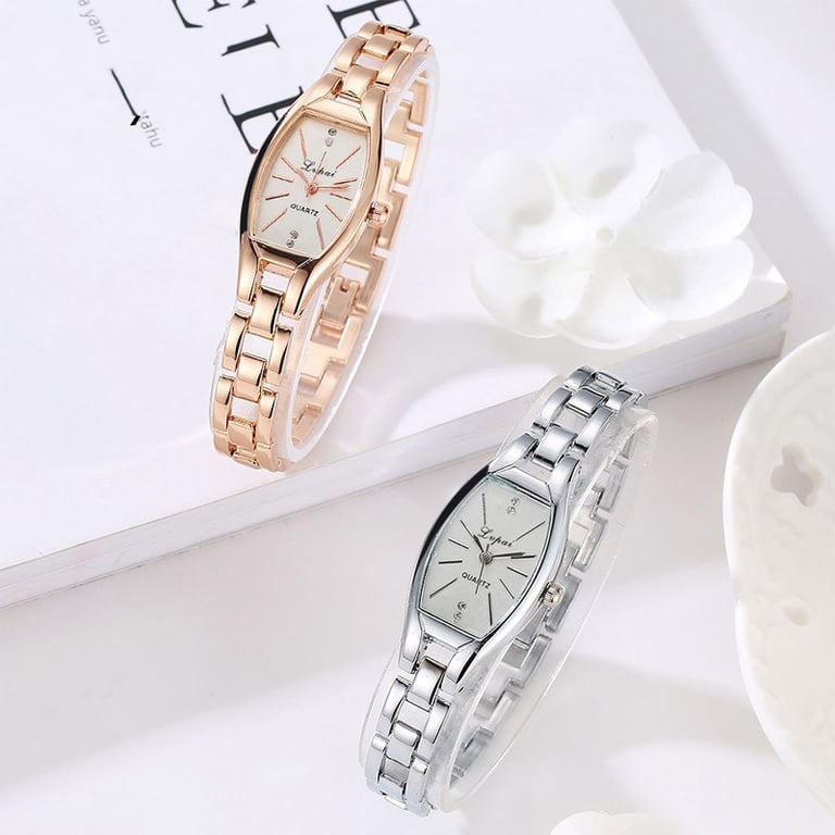 Women's watch in an elegant, delicate design. White unnumbered dial, adorned with subtle gemstones. Available in either silver or gold variant.