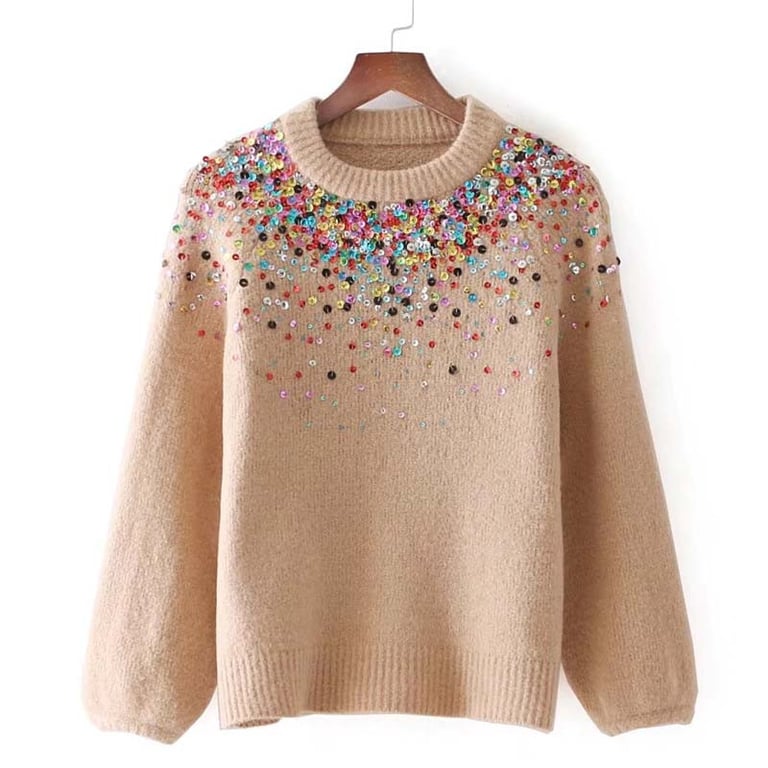 Women's sweater with embellishments in three colour variations, perfect for cold winter days.