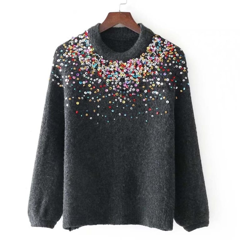Women's sweater with embellishments in three colour variations, perfect for chilly winter days.