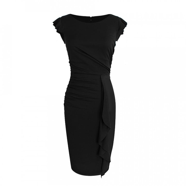 Women's evening dress that hugs the body. The dress features short sleeves with ruffles and gathering at the front. Available in three colours – black, blue, turquoise.