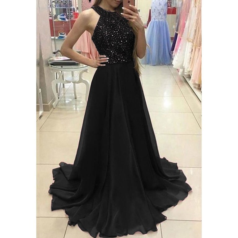Women's long evening dress with sequins and tulle skirt.