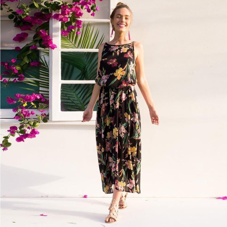 Ladies' evening dress – simple loose summer dress with flowers