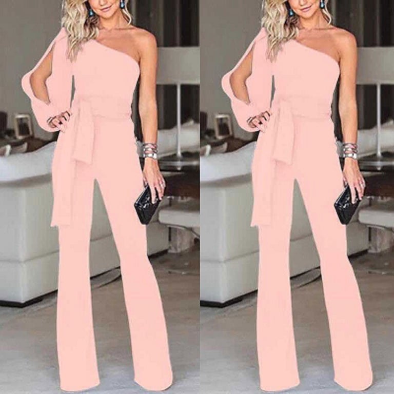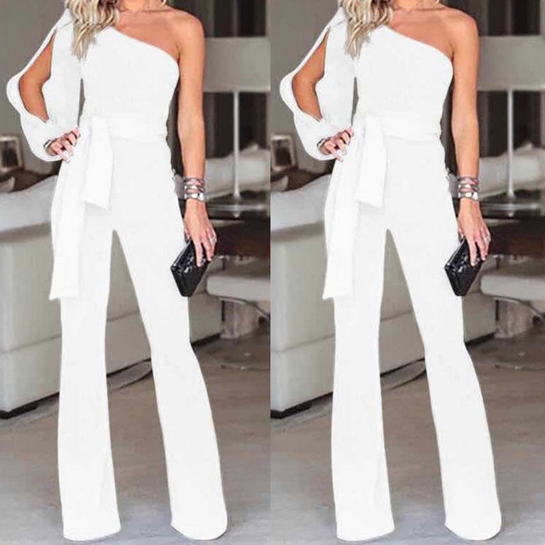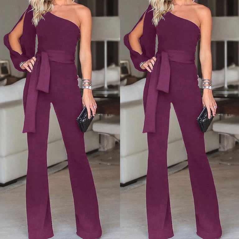 Ladies' evening jumpsuit with an off-the-shoulder design.