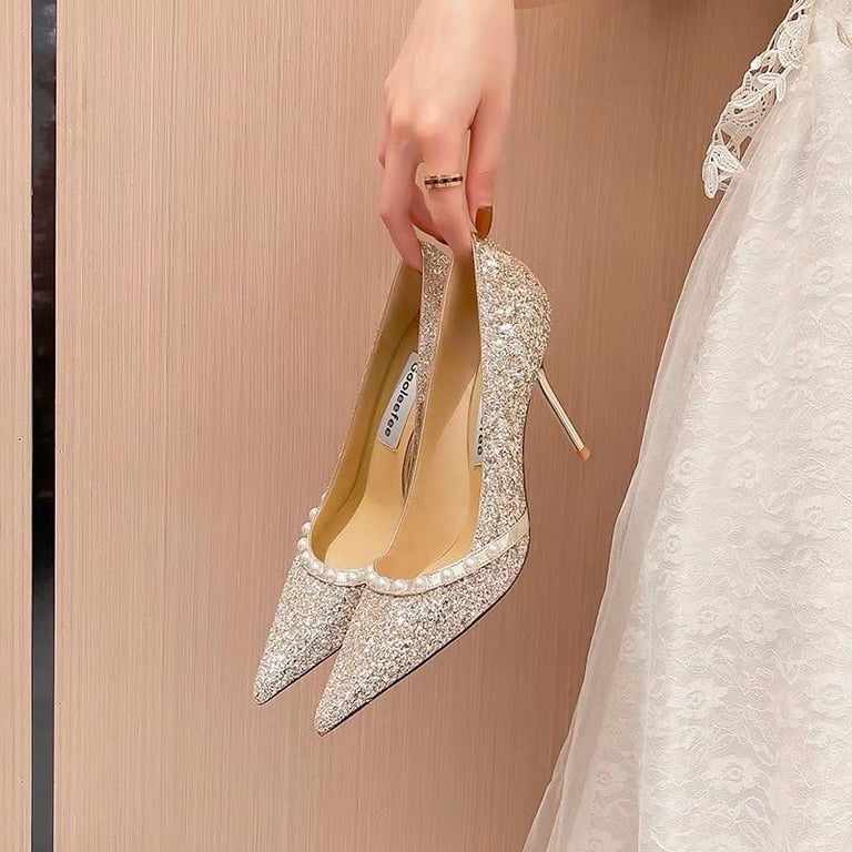 Women's Extravagant Glitter Heels with Pearls Sherman