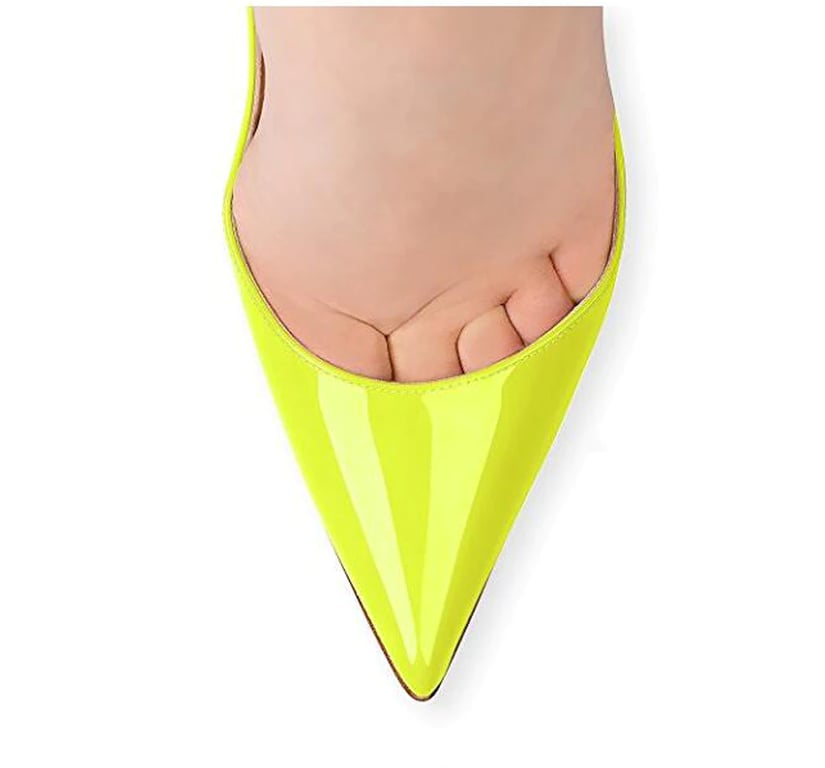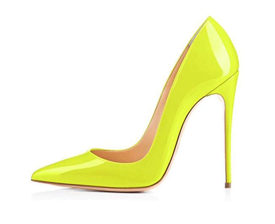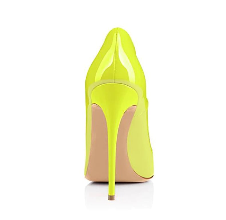 Ladies' extravagant yellow high-heeled shoes.