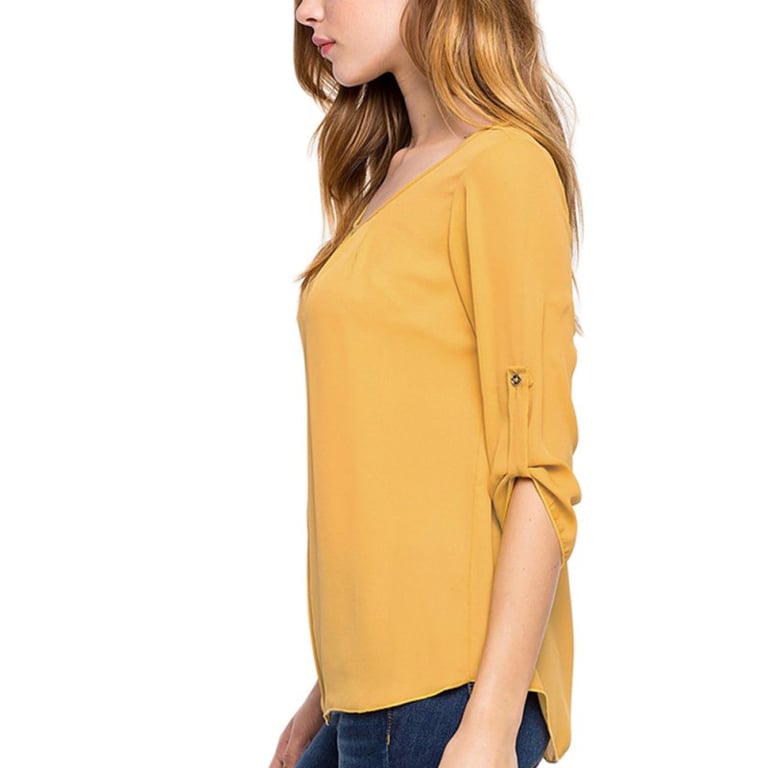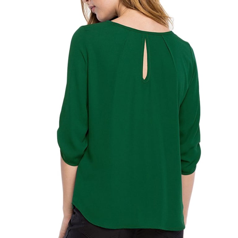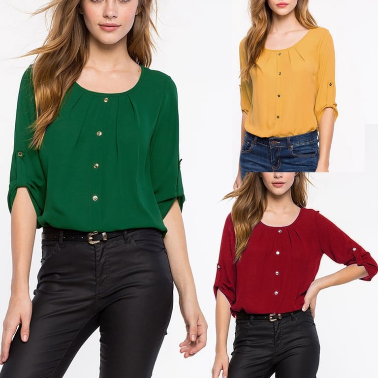 A classic solid-colour blouse that never goes out of style! It features 4 buttons.