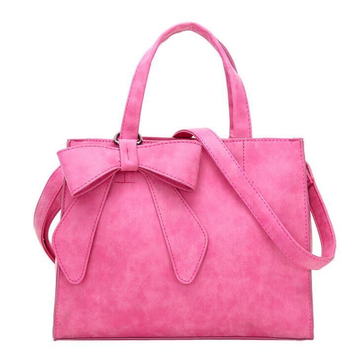 A bow, mentioned earlier, adds a touch of flair to the design, located about 2 cm below the handbag's handle.