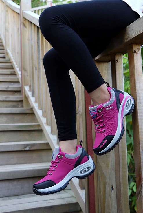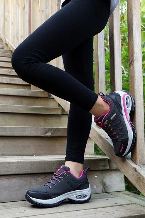 The shoes are very comfortable and are fastened with laces.