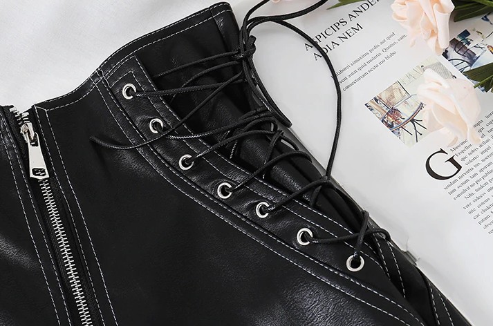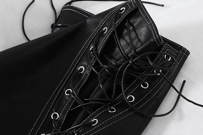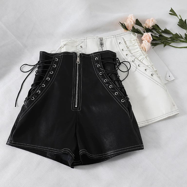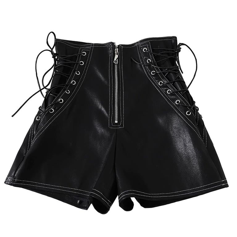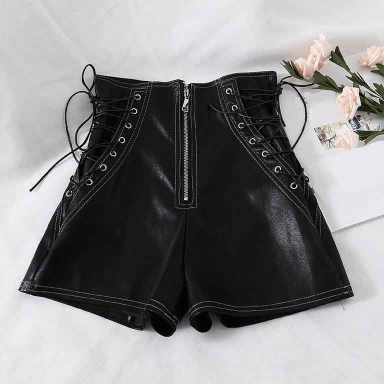 The shorts are made from high-quality faux leather.