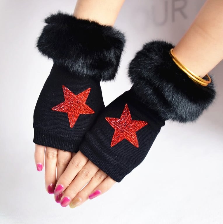 Women's Fingerless Gloves with Rhinestones