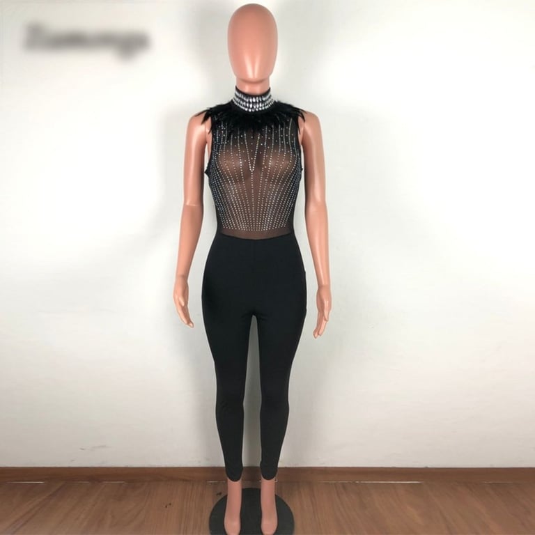 Women's Fitted Jumpsuit with Rhinestones