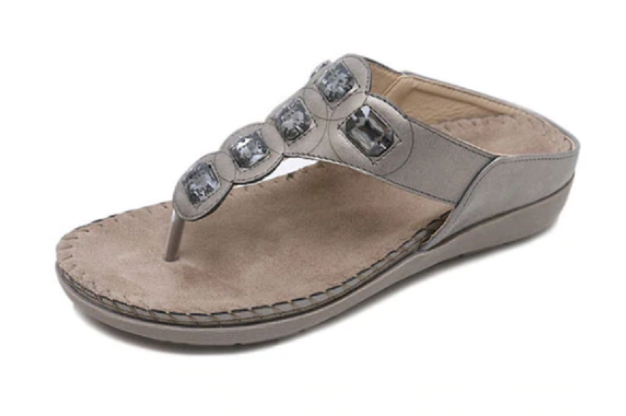 You will definitely love these beautiful flip-flops adorned with rhinestones.
