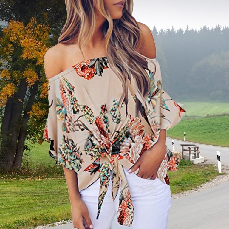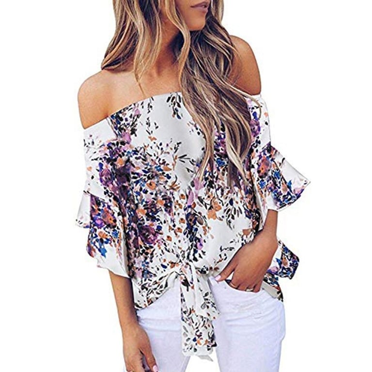 Women's Floral Blouse with Exposed Shoulders