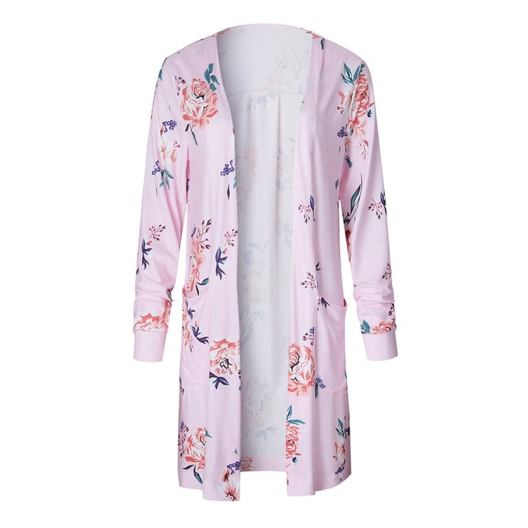 Women's lightweight cardigan/cover-up with long sleeves. No fastening. Loose comfortable fit. Delicate floral print. Available in several colour options.