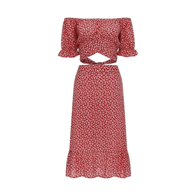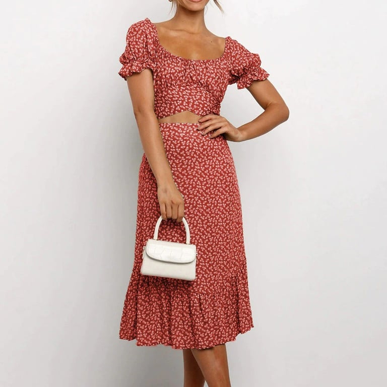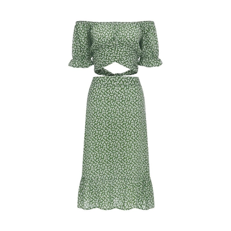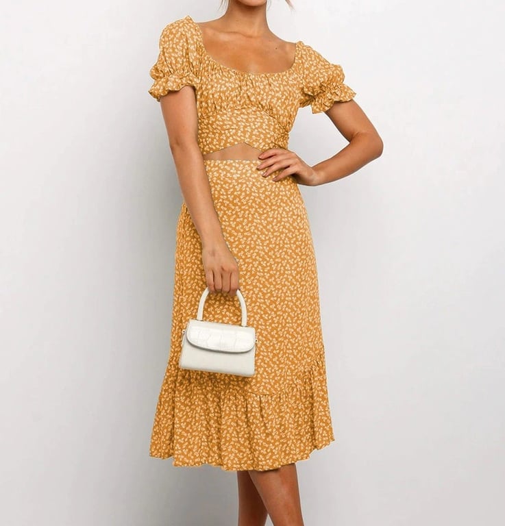Women's Floral Crop Top and Skirt