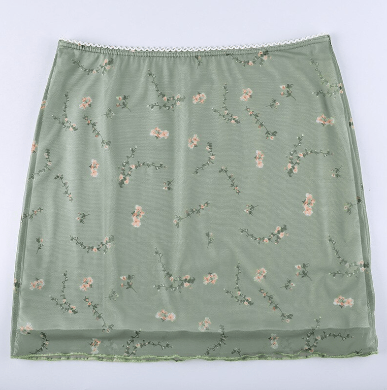 Women's Floral Trendy Two-Layered Skirt with High Waist