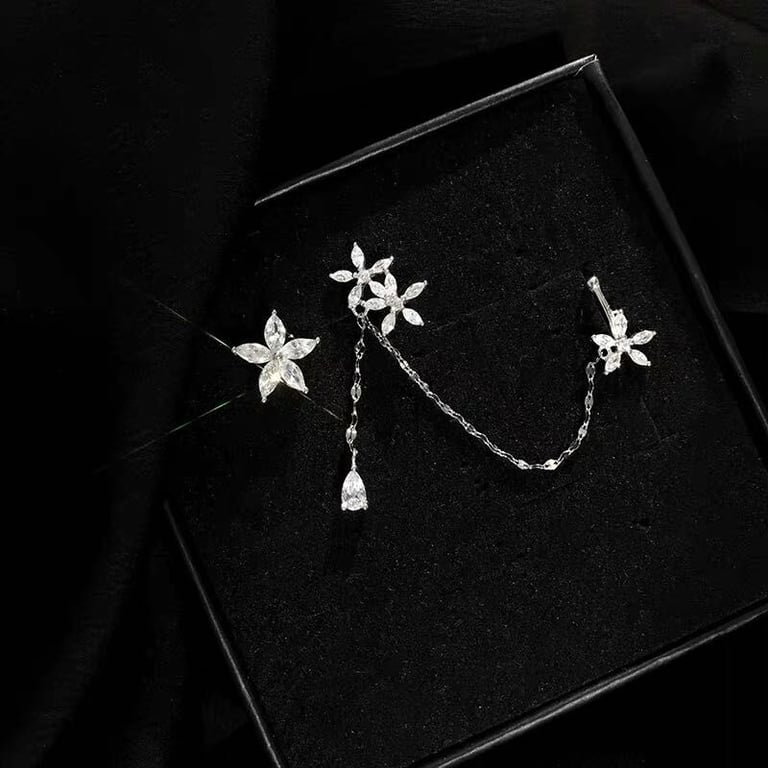 Women's flower earrings with zirconia