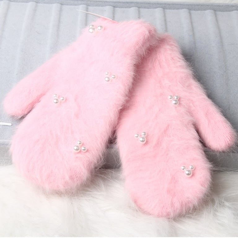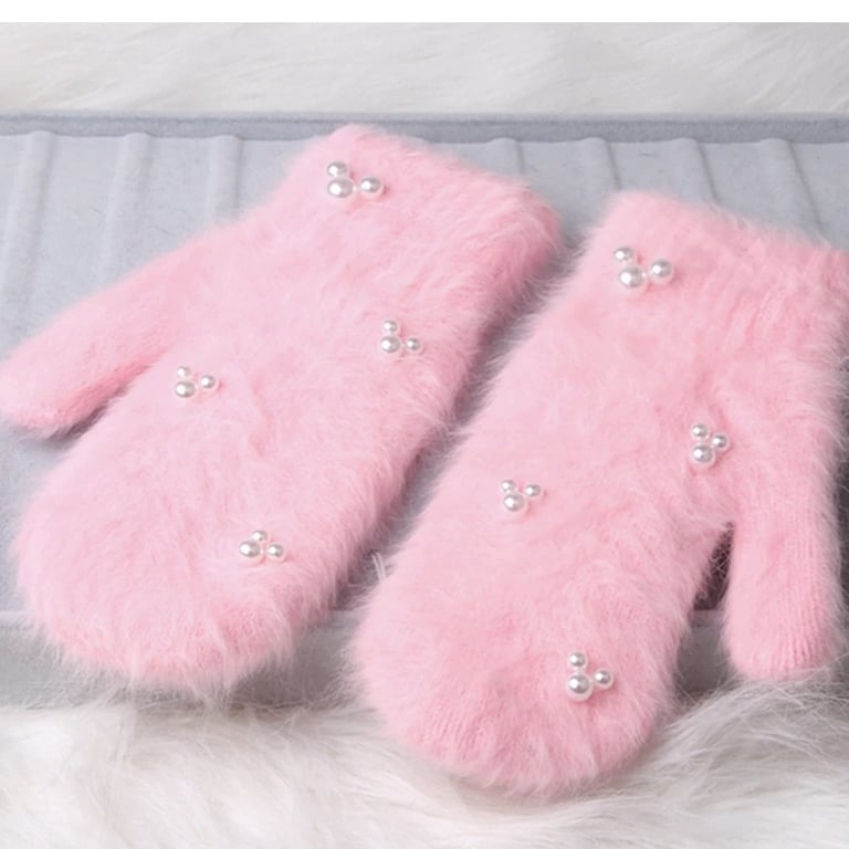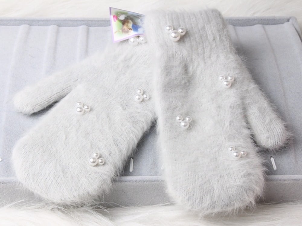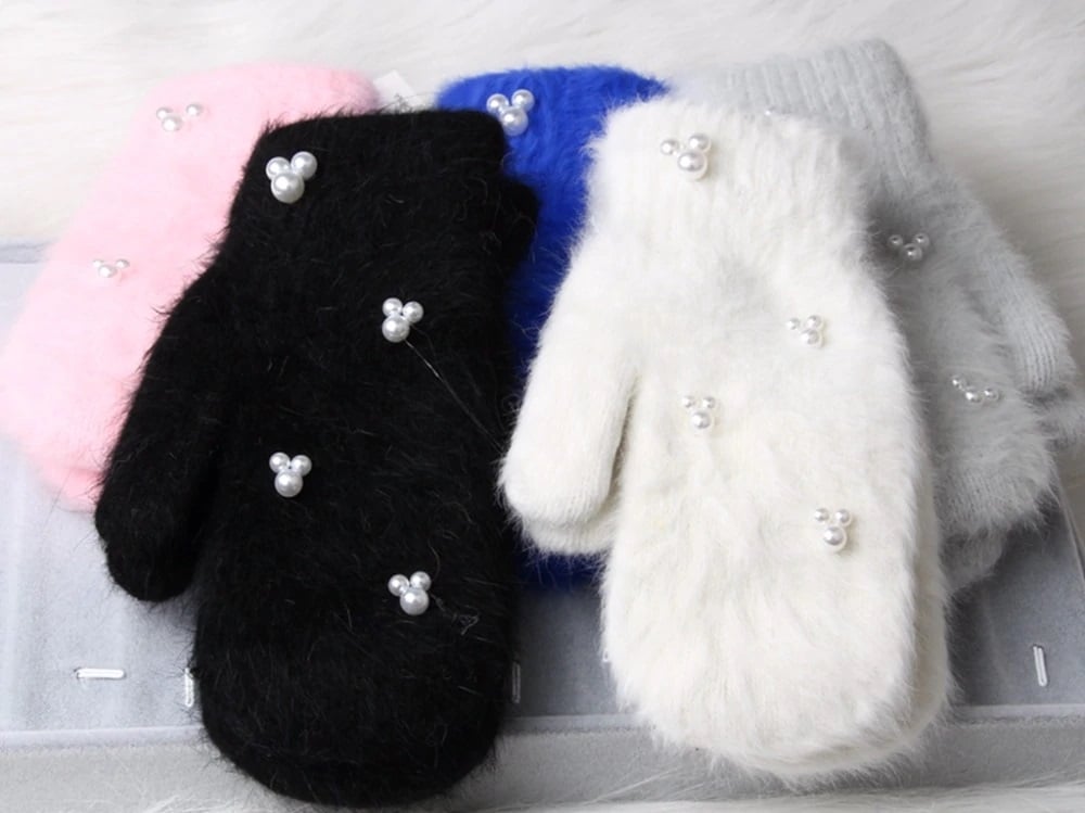 Ladies' fluffy mittens with pearls – 5 colours