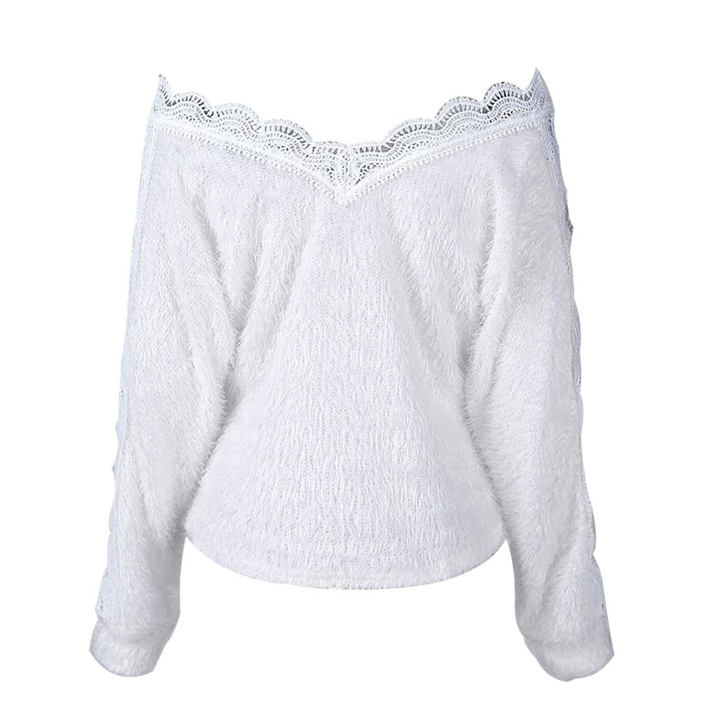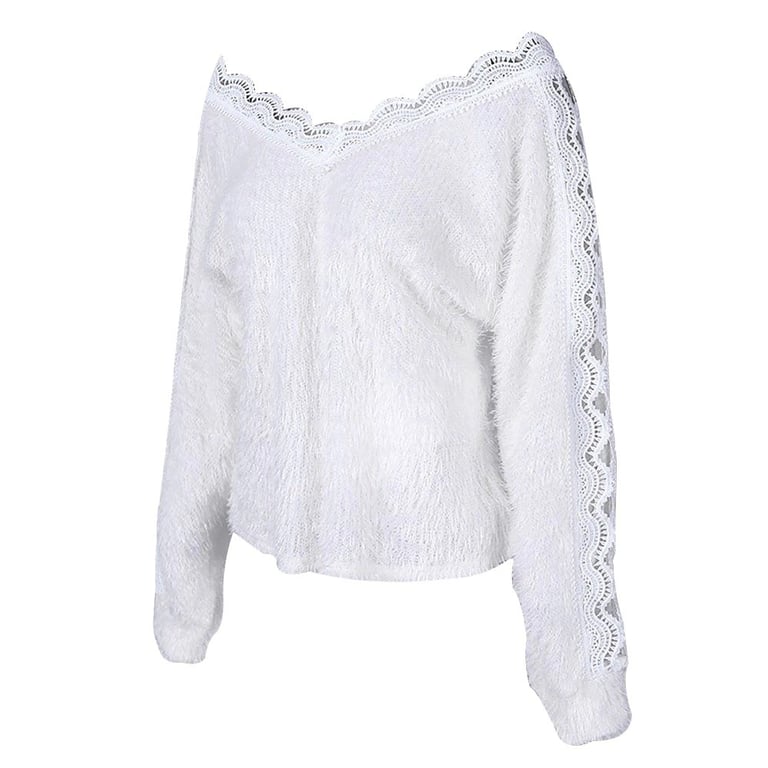 Women's Furry Sweater with Lace