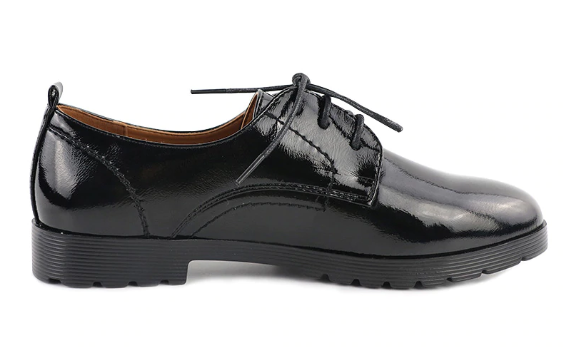 The shoes are in shiny black.