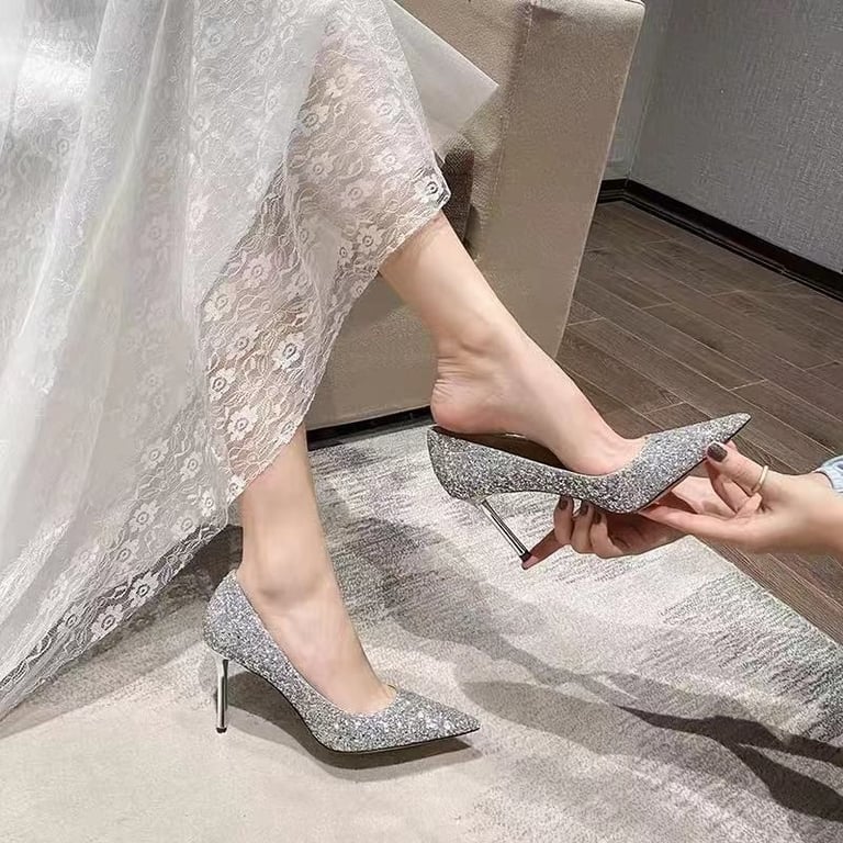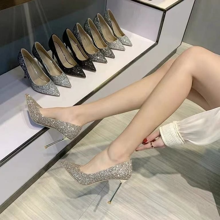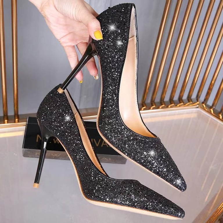 Women's Sparkly Stiletto Heels with Sequins Zina