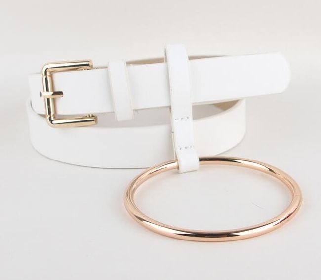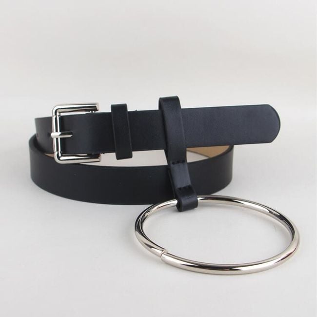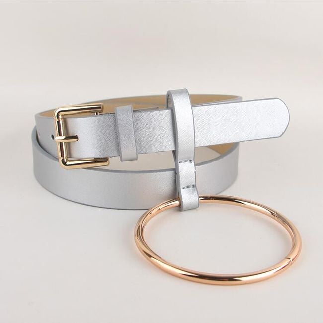 Women's belt with a prominent circle. It can serve as a decoration or a practical part, for example, for keys. Many colour variations of the belt are available. The circular detail is sure to catch your eye and delight you.