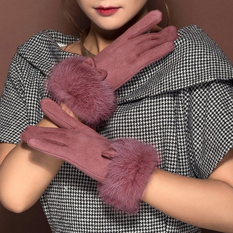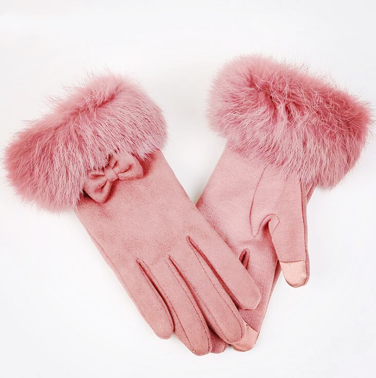 Women's winter gloves adorned with a bow and a large warm fur lining. Available in various colours.