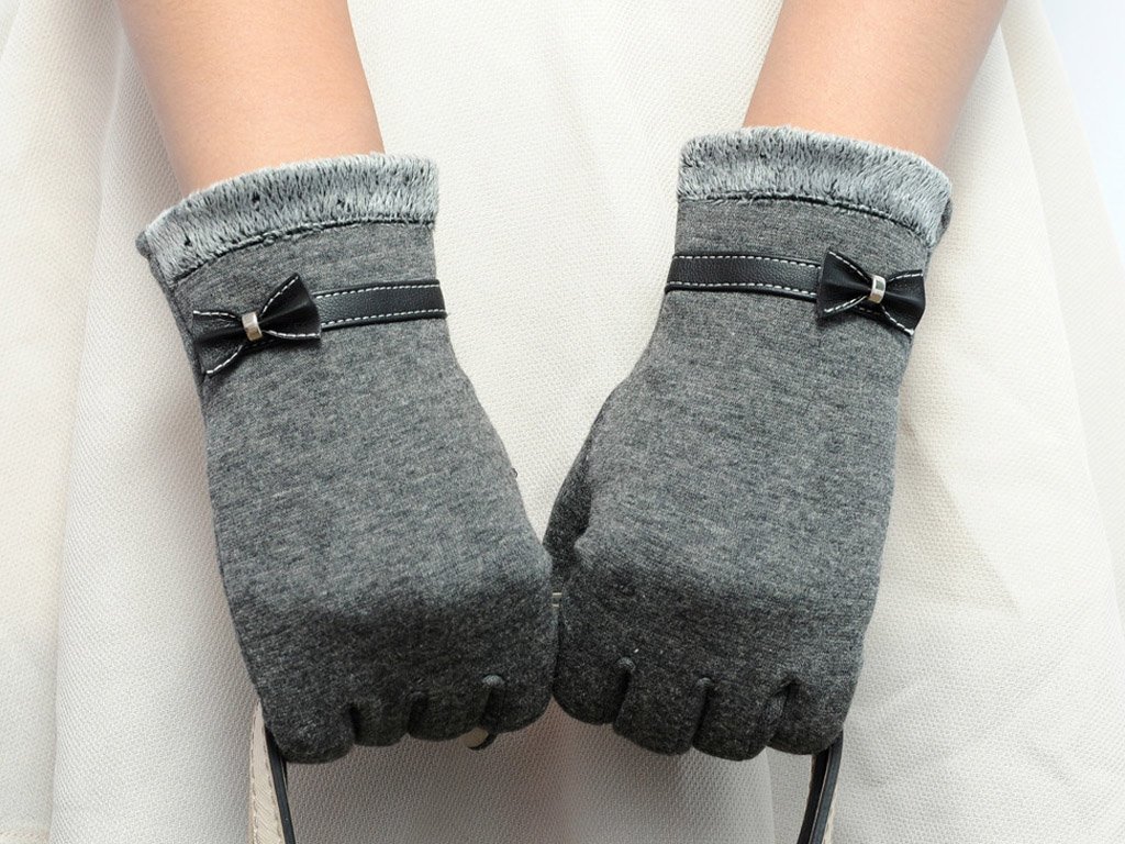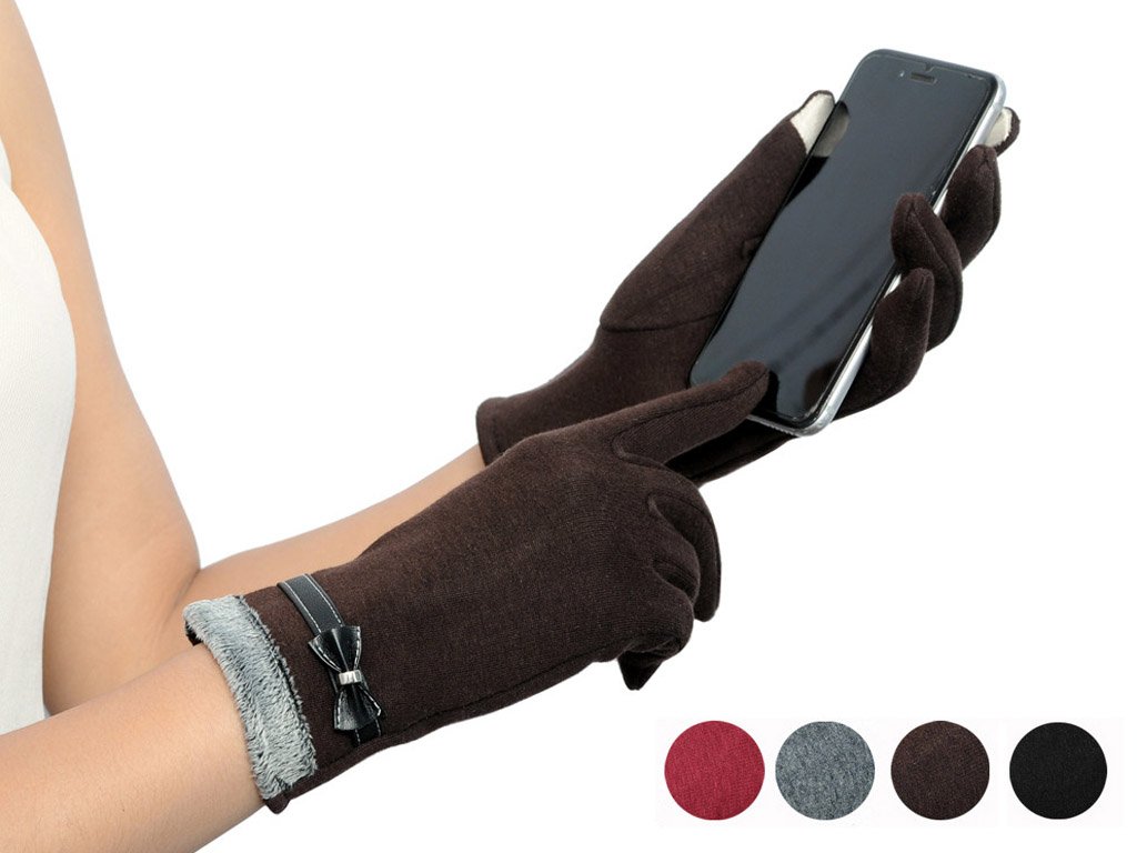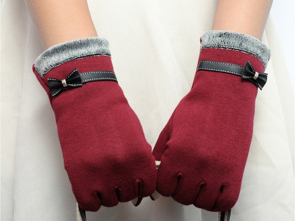 Women's winter gloves with faux fur trim and an elegant bow. They will keep you warm and add a touch of style as autumn and winter set in. Be prepared for the cold in time and equip yourself with these elegant gloves! 4 colours to choose from. Surface treatment for touchscreen control.