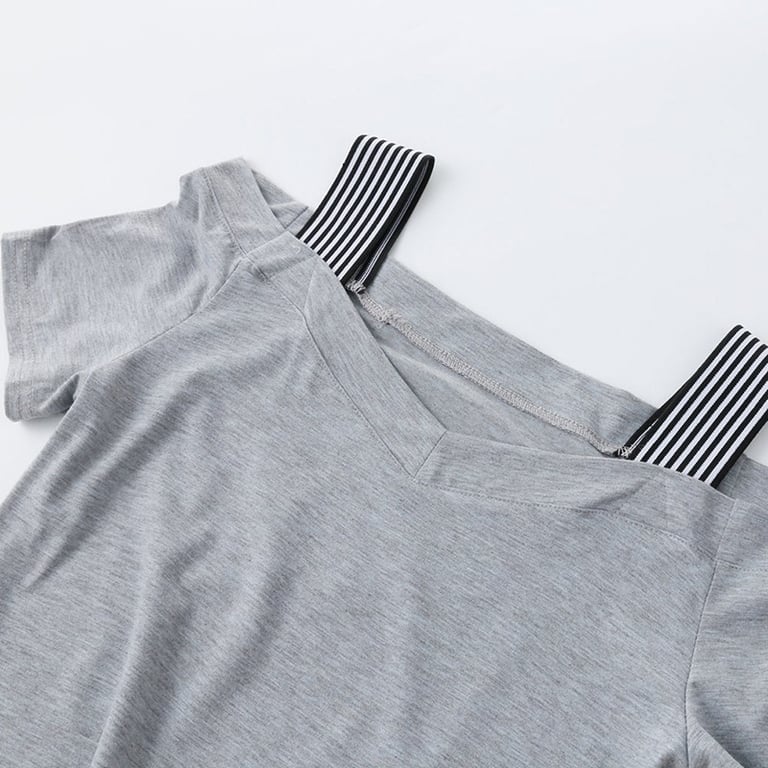 Women's grey mini dress with a wide neckline and contrasting straps.