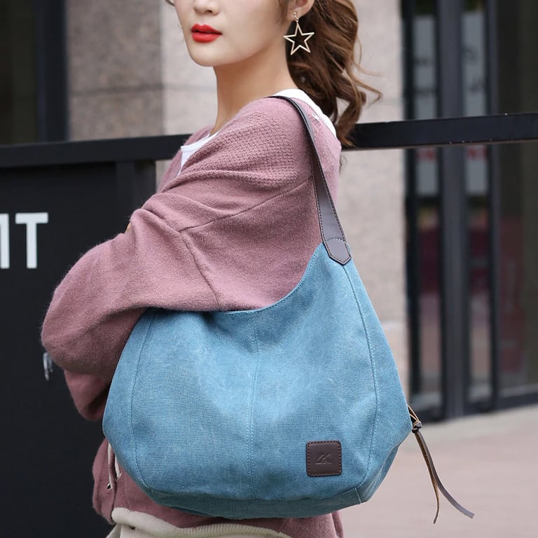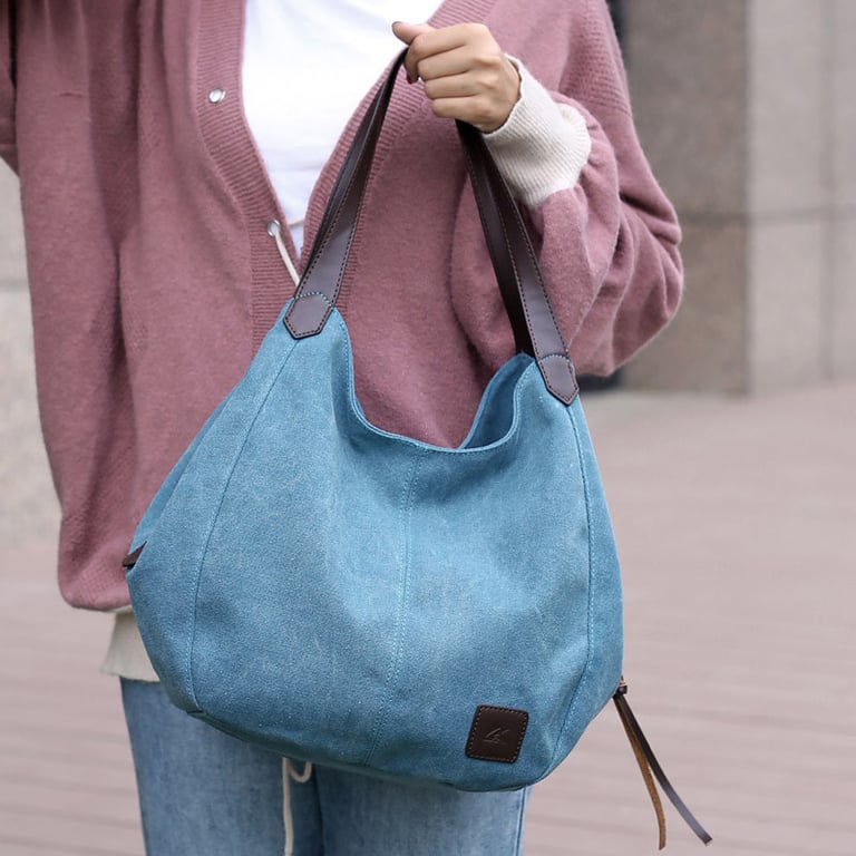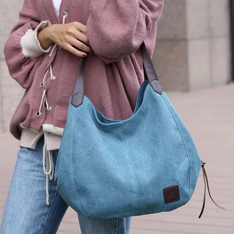 Women's large handbag for carrying by hand or over the shoulder, with a suede-like appearance and a large handle. The handbag features a zip fastening and snap buttons, along with several internal pockets. Available in various colours.