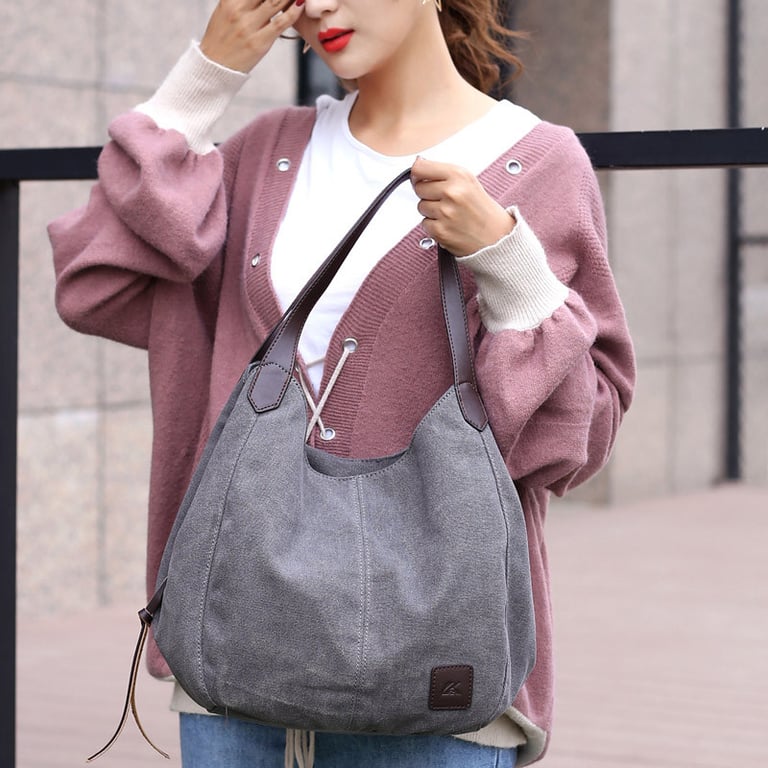 Women's large handbag for carrying by hand or over the shoulder, with a suede-like appearance and a large handle. The handbag features a zip fastening and press studs, along with several internal pockets. Available in various colours.