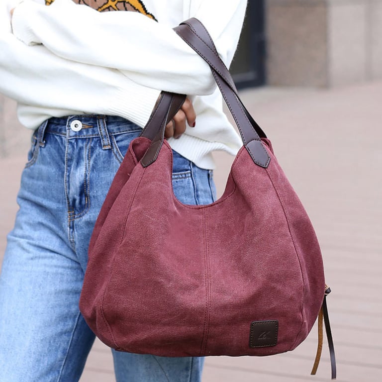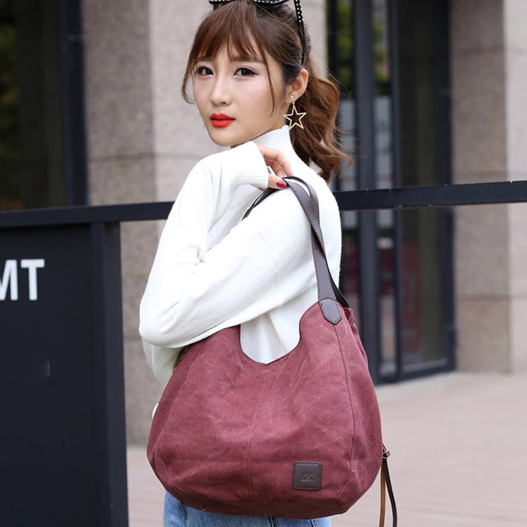 Large women's handbag for hand or shoulder, with a suede-like appearance and a large handle. The handbag has a zip and snap fastening and several internal pockets. Available in various colours.