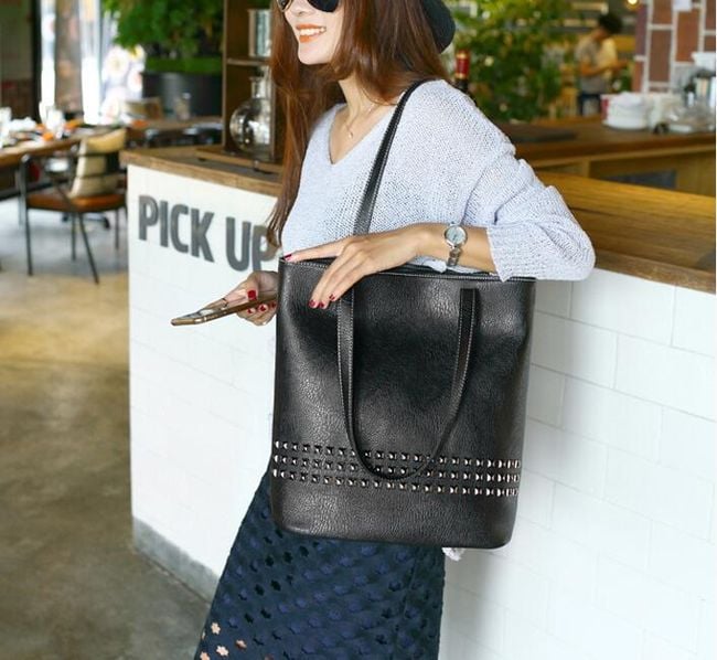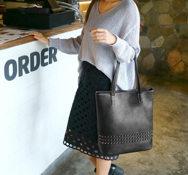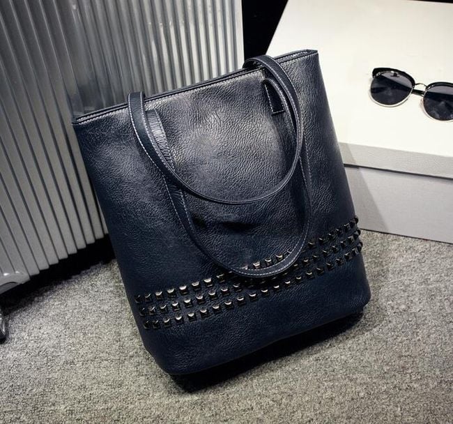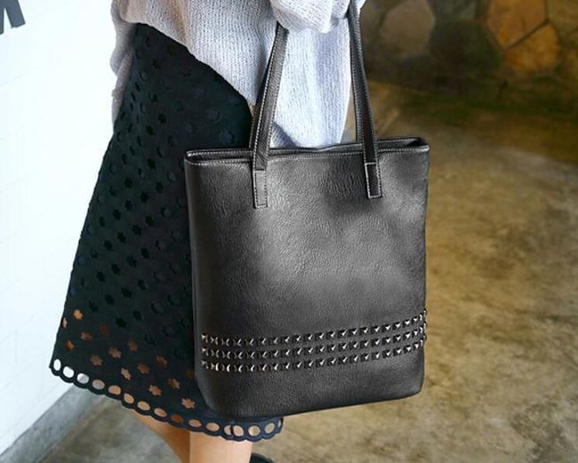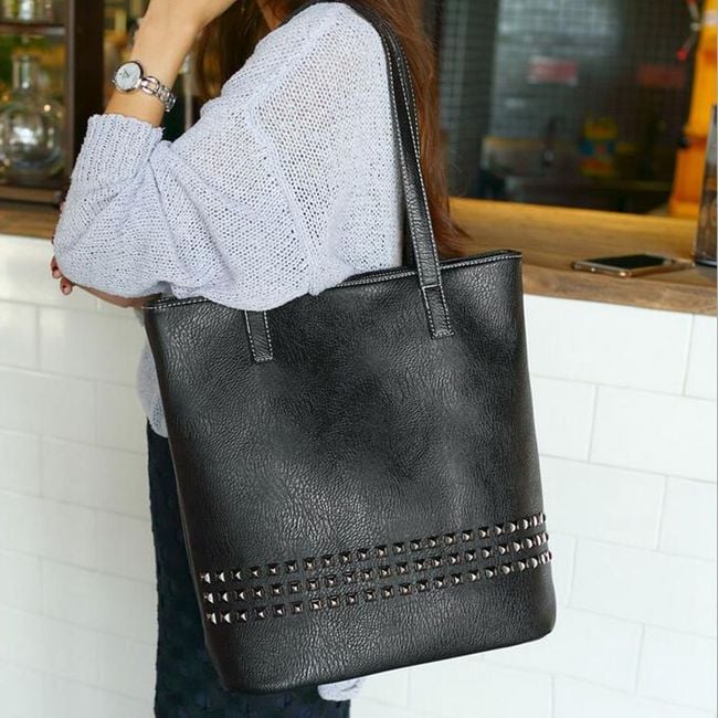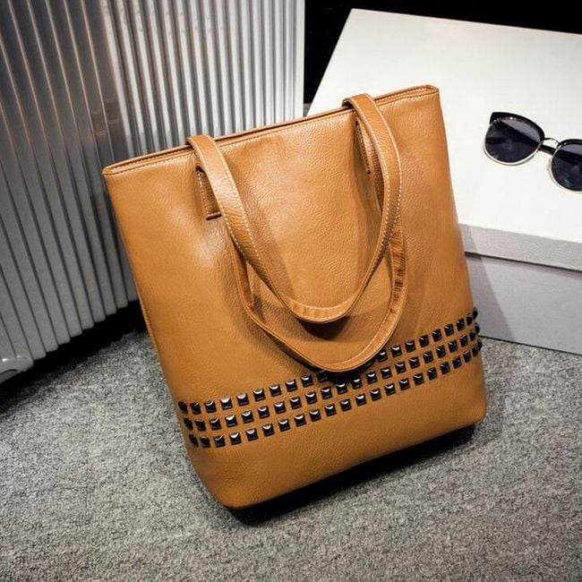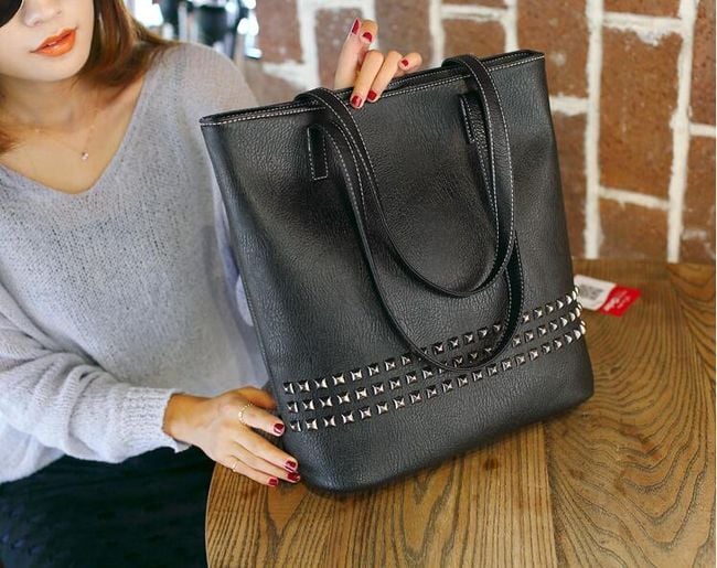 Luxury women's handbag in faux leather with decorative studs.